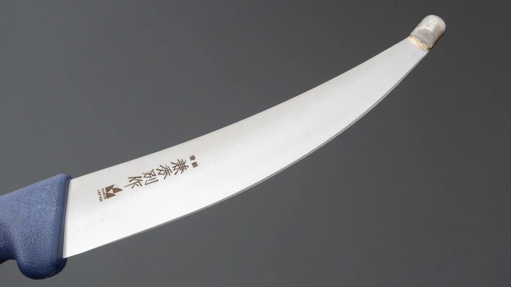 The Chosaki is a traditional Japanese specialty blade designed primarily for meat processing, particularly for gutting, boning, and trimming internal organs. It features a short, curved blade with a pointed tip that curves slightly upward, allowing for precise internal cuts without damaging surrounding tissue.