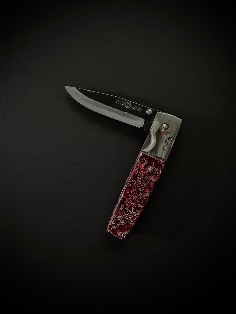 Takeda Liner Lock Folding Knife 76mm Red Resin Handle