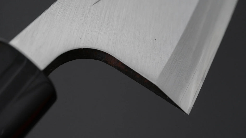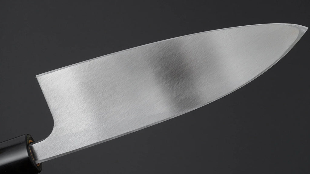 A Deba is a traditional Japanese fish filleting/butchery knife that is single-sided/bevelled. Despite its Santoku-like profile, it does not perform well on dense produce; however, it excels in deboning various fish, thanks to its weight and bevel shape. The technique of using a deba is quite different from using a flexible filleting knife (Western style fish deboning), but in practiced hands, both styles can yield very good results. We recommend a deba for any cook looking to get better at filleting fish and sharpening a single bevel knife in Japanese fashion.